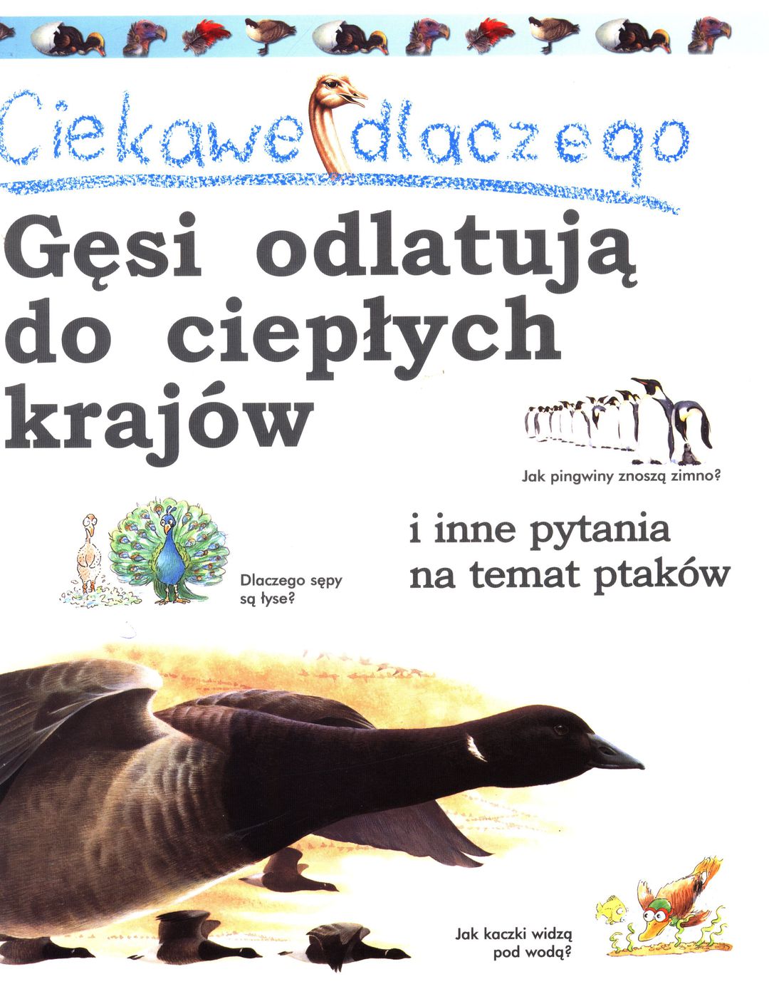 Oto książka, która w łatwy i ciekawy sposób wyjaśnia zagadki dotyczące świata ptaków. Dziecko dowie się z niej, dlaczego sępy są łyse, który ptak węszy przez całą noc i jak pingwiny znoszą arktyczny chłód. Zrozumie też, jak latają ptaki, w jakich miejscach składają jaja i jakie wydają dźwięki. To zabawna i fascynująca lektura nie tylko dla najmłodszych.